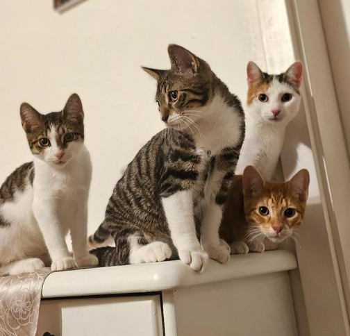 Yoko und Yoki wurden in unserer Pflegestelle am 29.04.25 geboren. Die Mama kam lief damals bei der von Düring Kaserne und würde trächtig gesichert. Mama Yolanda lebt schon wieder in Freiheit und Yoko und Yoki warten sehnsüchtig auf ein schönes Zuhause. Beide sind regelmäßig entwurmt. Sie sind gechipt, geimpft und kastriert. Mama Yolanda wurde negativ auf FelV und FIV getestet.