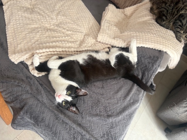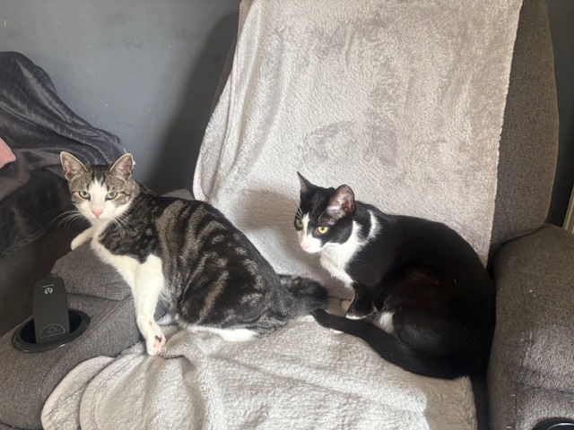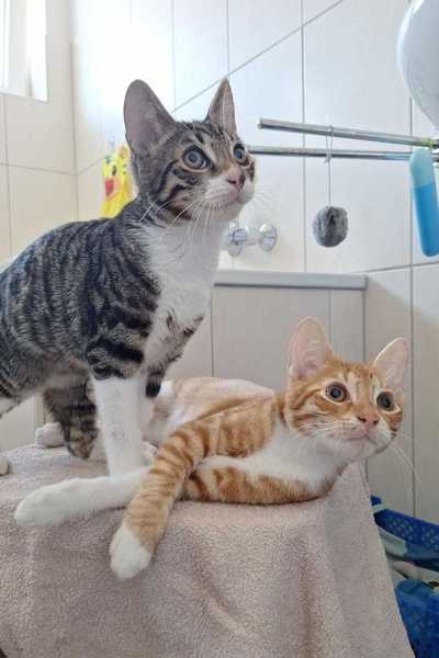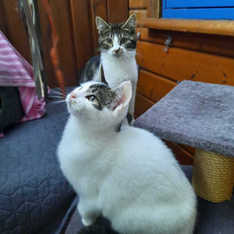 Yuri wurde im Mai 25 geboren und sein Kumpel Willi im Juni 25. Die zwei suchen ein gemeinsames Zuhause mit Freigang. Beide sind sehr eng miteinander. Sie spielen und kuscheln viel miteinander. Bei fremden Menschen sind sie noch etwas zurückhaltend, aber wenn man sie ersteinmal überzeugt hat, lassen sie sich gerne streicheln. Aufgrund ihrer engen Bindung werden sie nur zusammen vermittelt, es dürfen aber gerne weitere Tiere im Haushalt leben. Beide Mamas sind negativ getestet. Yuri und Willi sind entwurmt, gechipt und geimpft.