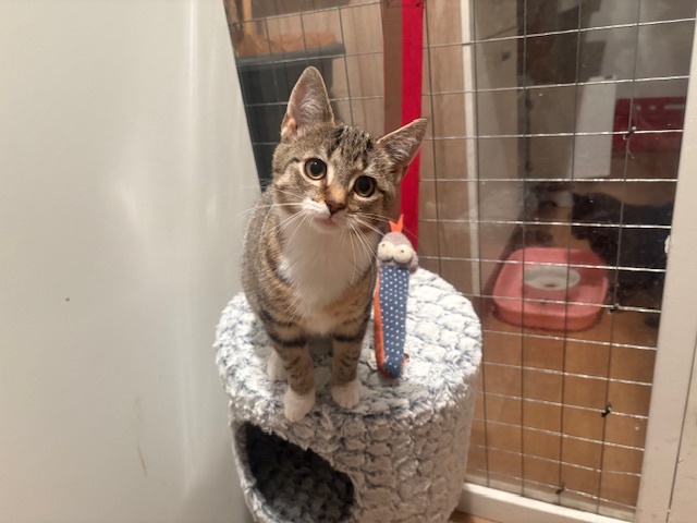 Vicky ist in der Nachbarschaft zum Katzenhaus in Helvesiek mit Mutter in einem Garten aufgetaucht und wurde damals in unserer Pflegestelle in Brockel aufgenommen. Vee ist mittlerweile vermittelt. Vicky sucht noch ein schönes zuhause in dem sie ihrem Freiheitsdrang nachgehen kann. Sie liebt das Toben, Spielen und Mäusefangen im Garten. Sie ist im Mai 24 geboren, gechipt, negativ auf FIV und FelV getestet und bekommen demnächst ihre dritte Impfung.