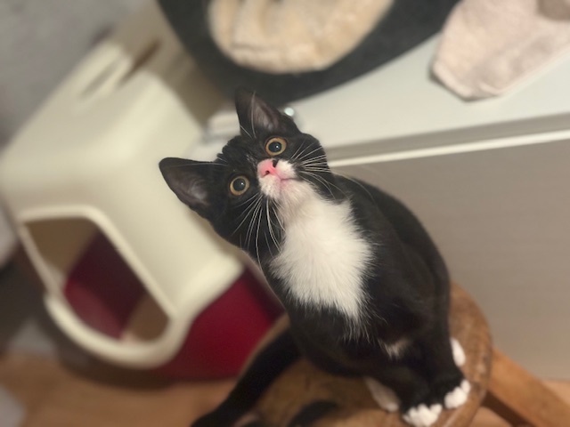 Yves kam aus Gnarrenburg zu uns. Eigentlich sollte er nur kastiert werden und dann wieder zurück, aber weil sein Katzenkollege Ostwind verletzt war und nicht alleine bleiben sollte haben wir ihn aufgenommen. Nun wartet er auf einen Platz, wo er so sein darf, wie er eben ist, misstrauisch und sehr ängstlich den Menschen gegenüber, das hat ihm sein bisheriges Leben gelehrt, dass Menschen nicht gut zu ihm sind. Deshalb braucht es Menschen, die seeehr viel Geduld haben und ihm ganz viel Zeit geben.